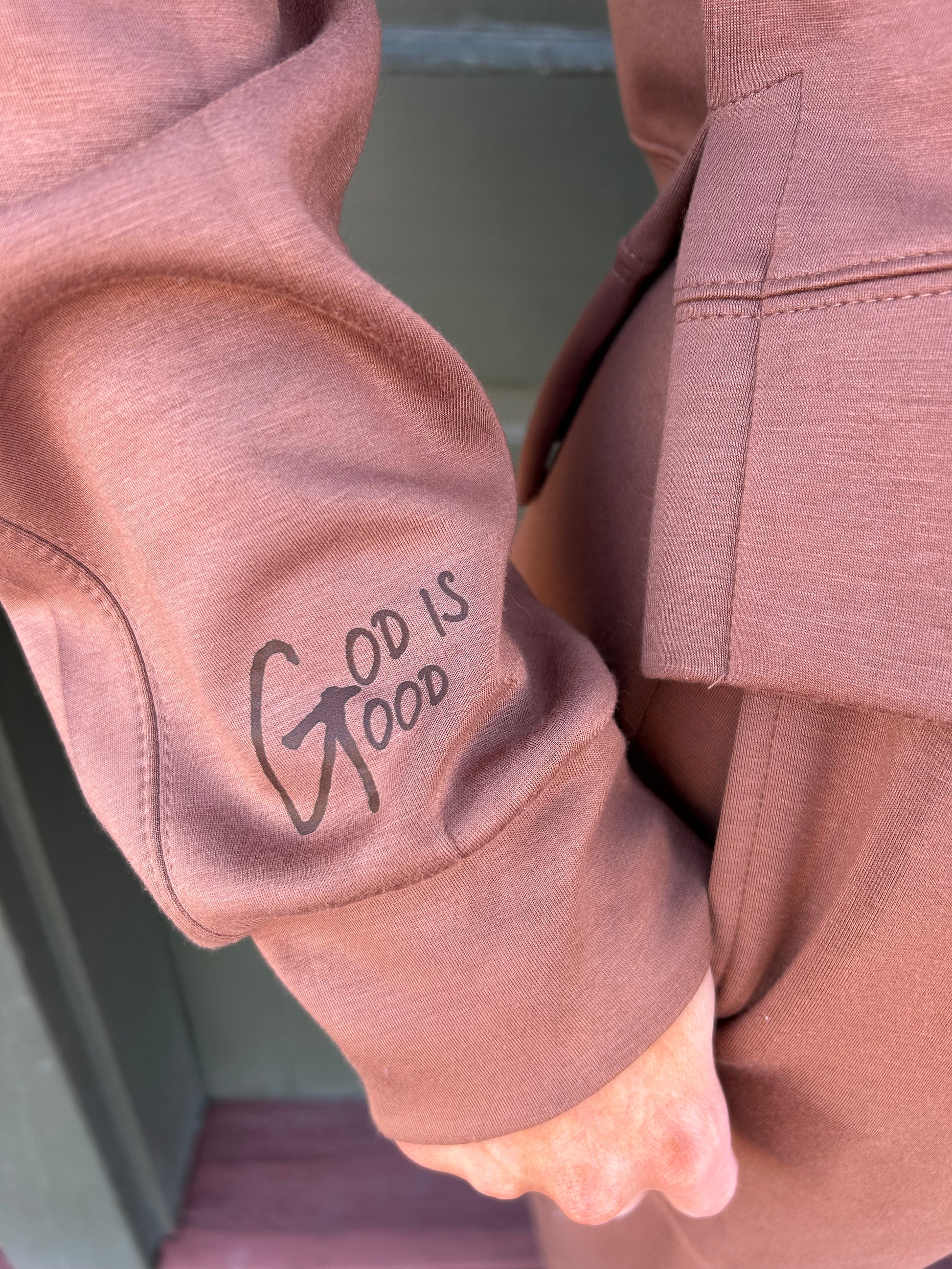 This rich chocolate brown set is designed for movement, ministry, and every moment in between. Clean, tonal lines flow across the top and bottom, sculpting a relaxed yet flattering silhouette that drapes with ease—because confidence doesn’t have to come at the cost of comfort.